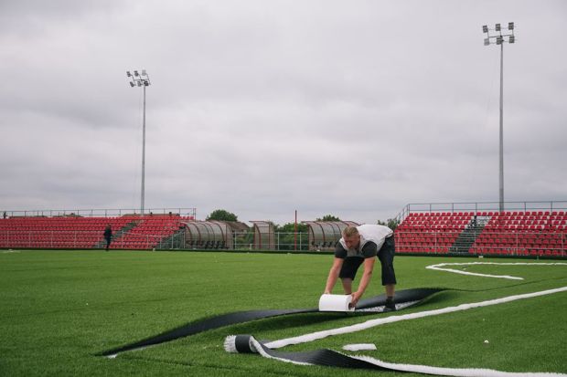 A kivitelező ISCHIA Sport SRL már a játéktér műfüves birítását is teríti, és a cég képviselőinek ígérete szerint a hónap végéig be is fejezik. Augusztusban kerül sor a pálya hitelesítésére a szövetség által, így a klub- és városvezetés nagyon bízik abban, hogy az új szezonban nem kell a városon kívül játszania a csapatnak.
