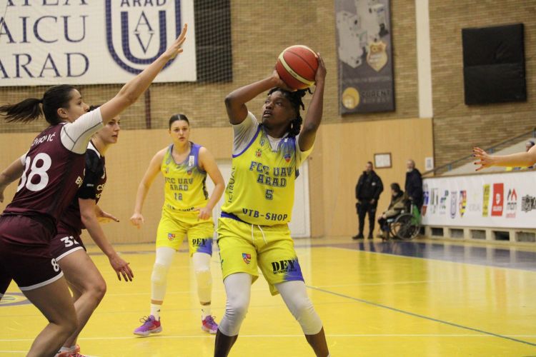 Az Aradi FCC Baschet UAV Arad a női kosárlabda Nemzeti Liga új listavezetője, miután szerda este hazai pályán 76:73-ra (20:17, 12:18, 23:17, 21:21) legyőzte a Bukaresti Rapid csapatát a 6. fordulóban.