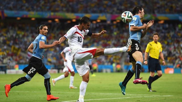 A Brazíliában zajló 20. labdarúgó-világbajnokság első igazán nagy meglepetése szombat este született a D-csoport nyitómeccsén: a jóval esélytelenebbnek tartott Costa Rica legyőzte a legutóbbi vb negyedik helyezettjét, Uruguay-t. Szünetben még a dél-amerikaiak vezettek, ám a második félidőben a karibiak három perc alatt megfordították az eredményt, a hajrában pedig a kegyelemdöfést is megadták.