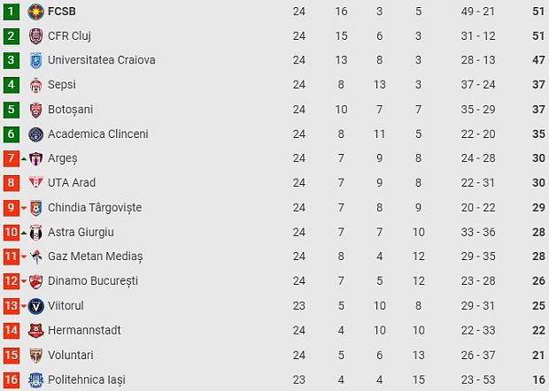 - FC Viitorul–Poli Iași 0–0-nál a 67. percben félbe szakadt, kedden sem tudták lejátszani, így egy későbbi időpontban pótolják.