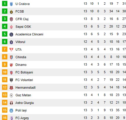 Liga 1, 13. forduló: UTA–Universitatea Craiova 1–2, gólszerzők: Buhăcianu (21.), illetve Cicâldău (13.), Ofosu (26.).