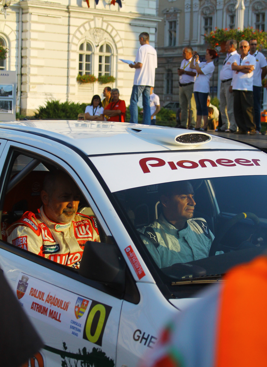 Pénteken este Aradon került sor az Arad Atrium Rally futam versenyzőinek, gépkocsijainak bemutatására a belvárosban. Amint arról már beszámoltunk, Gheorghe Falcă polgármester is bejelentette, hogy bizonyos szakaszokon részt vesz a versenyben. Falcă tegnap este egy Mitsubishi Lancer Evo VIII volánjánál jelentkezett, segédpilótája pedig Valentin Hard volt.