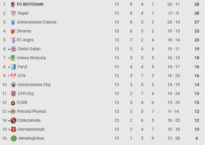 Az Oțelul 19 ponttal feljött a 6. helyre, az UTA jelenleg 16 ponttal a 9. helyen áll.