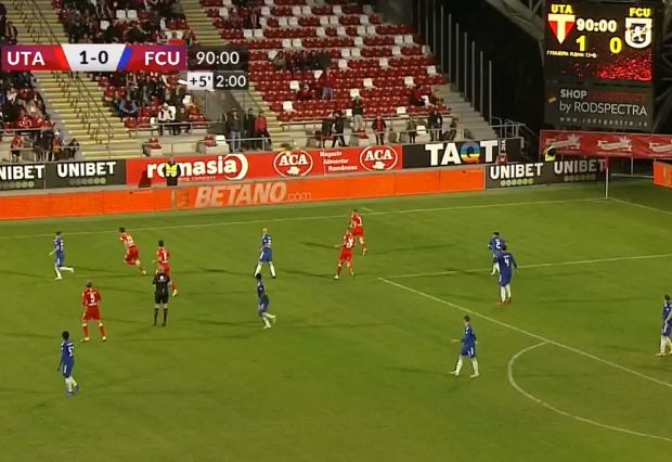 Az aradiak egy szerencsés góllal szereztek vezetést a 13. percben: Dangubic lövésénél az oltyán védelem megpróbált felszabadítani, de Negru – a vendégek szempontjából – oly szerencsétlenül találta el a labdát, hogy az Rogerről a craiovai kapuba pattant.