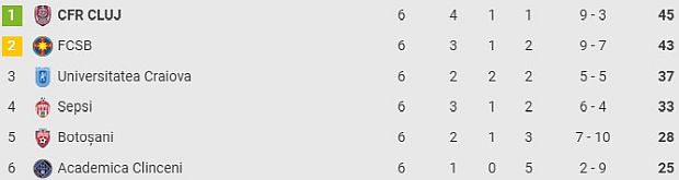 - Academica Clinceni–Kolozsvári CFR 0–1